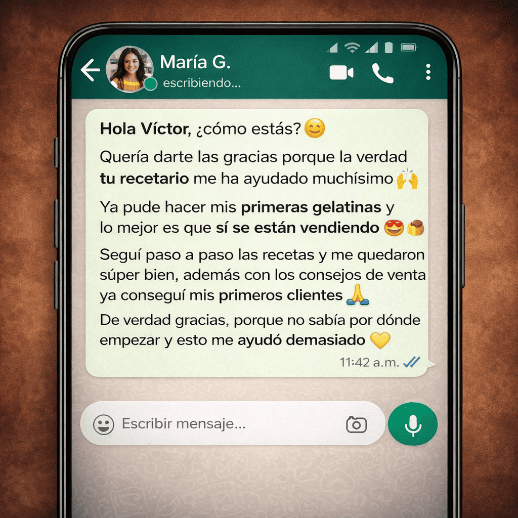 Descubrirás cómo convertir estas recetas en un ingreso real desde casa, consiguiendo tus primeros clientes y generando dinero con un negocio sencillo y rentable.